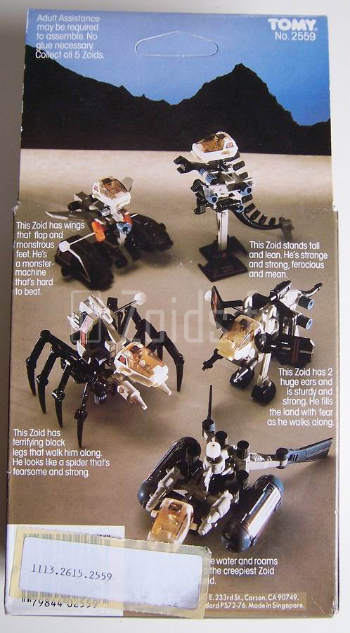 Traduction de sa description sur les côtés de la boite : "Un monstre-machine puissant et d’un autre temps. C’est le monstre le plus étrange qu’on aie jamais vu." "Ce Zoïd est grand et mince. Il est étrange et fort, féroce et mauvais."
