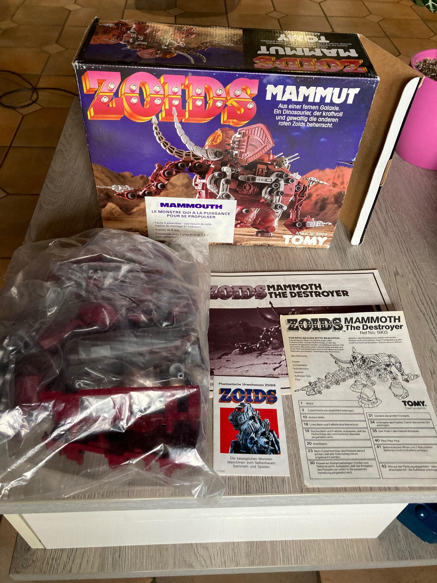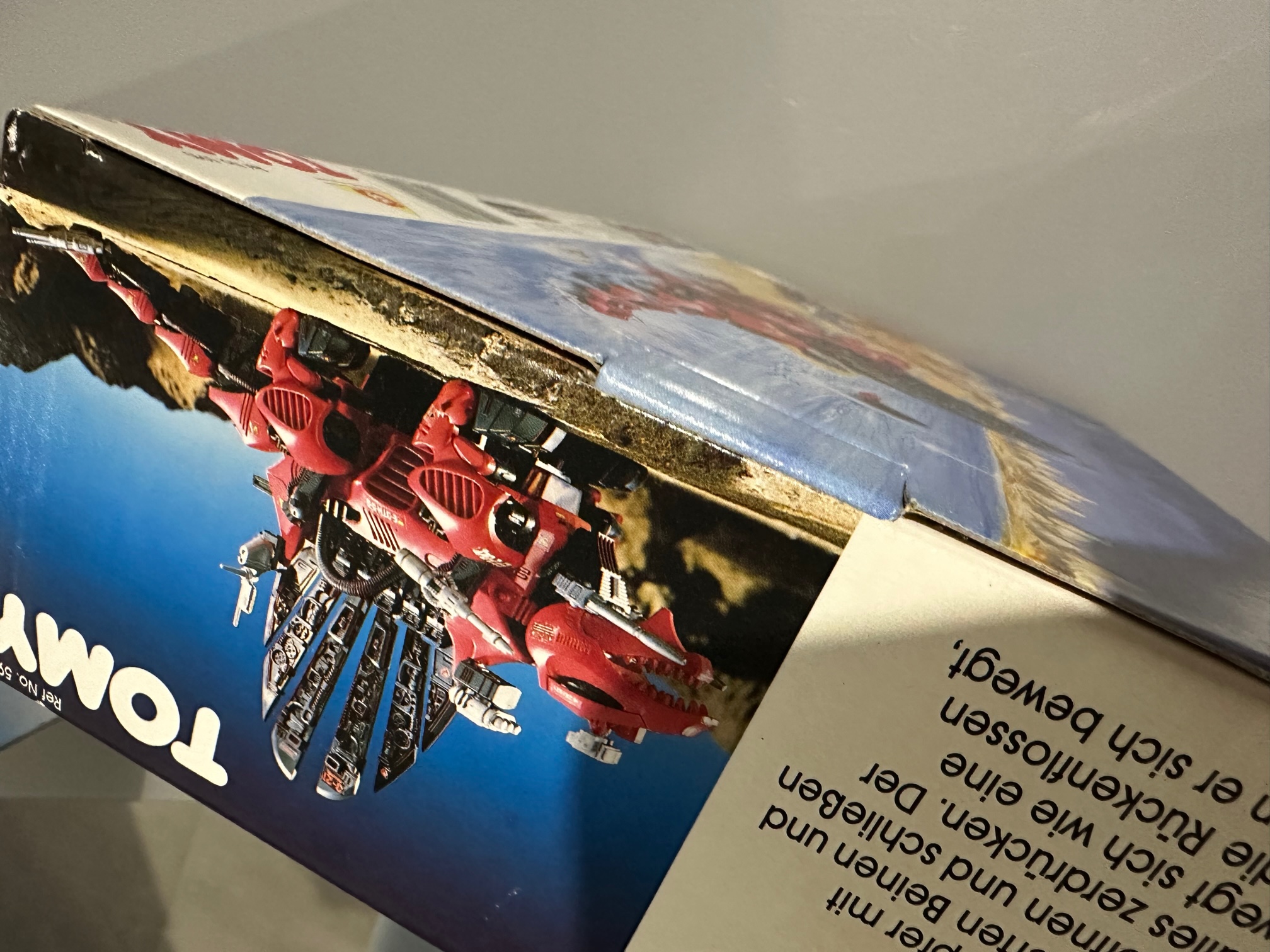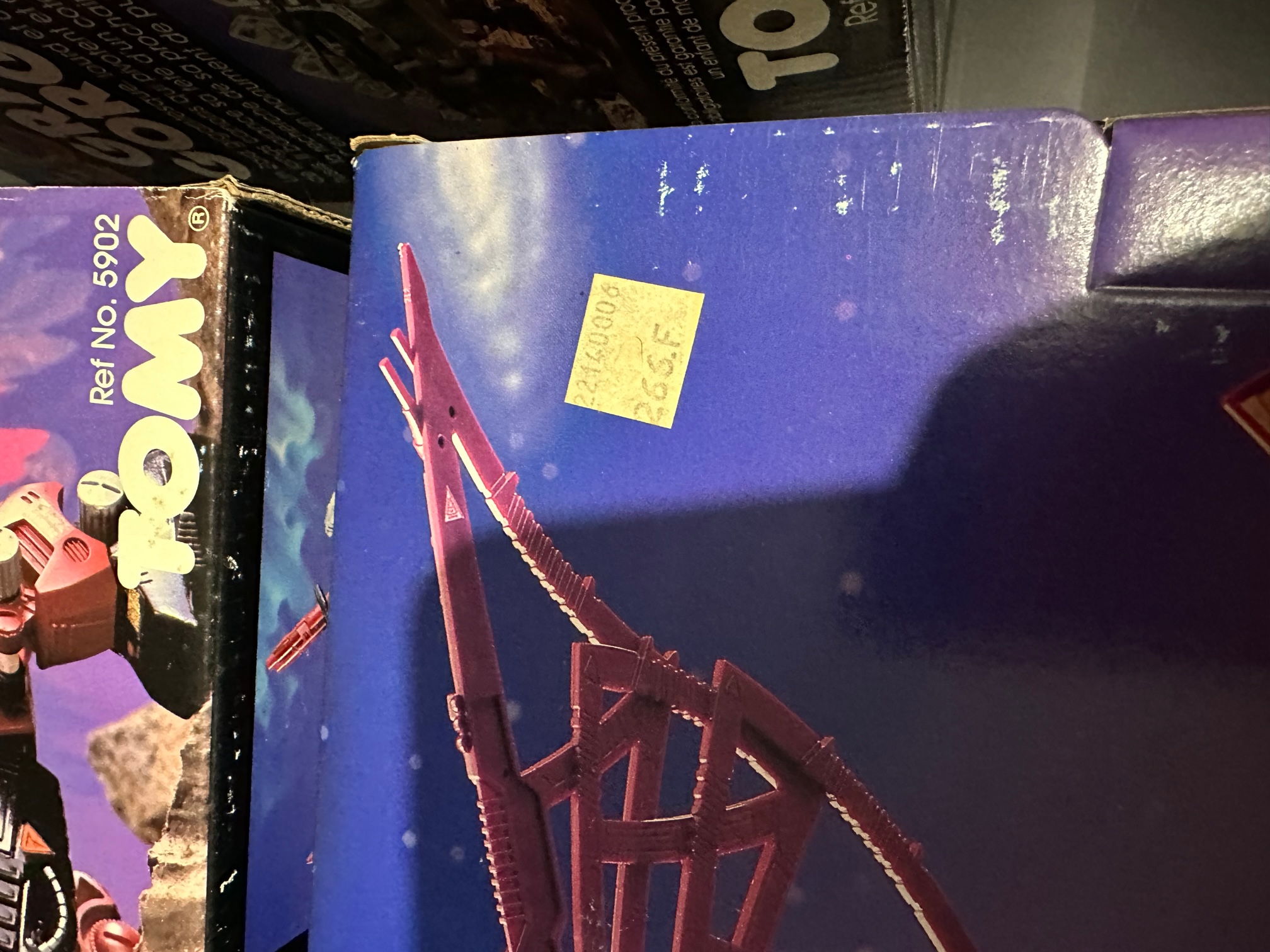 Oui je sais, mais bon, achat compulsif, c'est comme quand je vois une bouée licorne. Certes, je l'ai déjà, mais sur la boite que j'avais il y avait le gros autocollant allemand. Là, c'est vraiment la vraie boite d'origine, celui que ma mère m'a offert quand j'étais gamin et qui a été mon premier Zoid. Va falloir que je restaure un peu la boite.