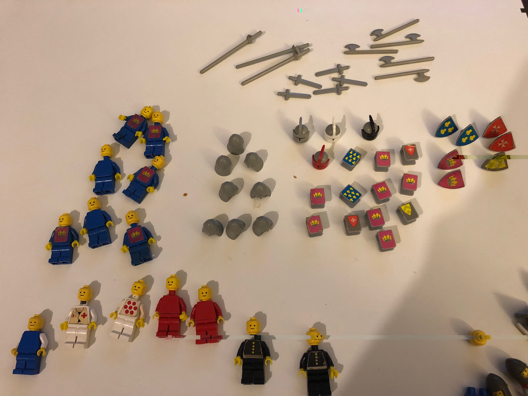 J'ai reçu le château 375 et j'ai décortiqué les figurines...il y a eu du mix... avec des Figs de sets de ville: je vais les garder car ca court pas les rues! plus qu'à trouver 2 figs toute blanche et 2 noirs... (je pensais prendre des figs Space avec le logo espace fané: vous avez un technique pour effacer entièrement le logo espace ?? qq'un sait de quel set provient le fig "blanche à petit poit rouge" ? :$