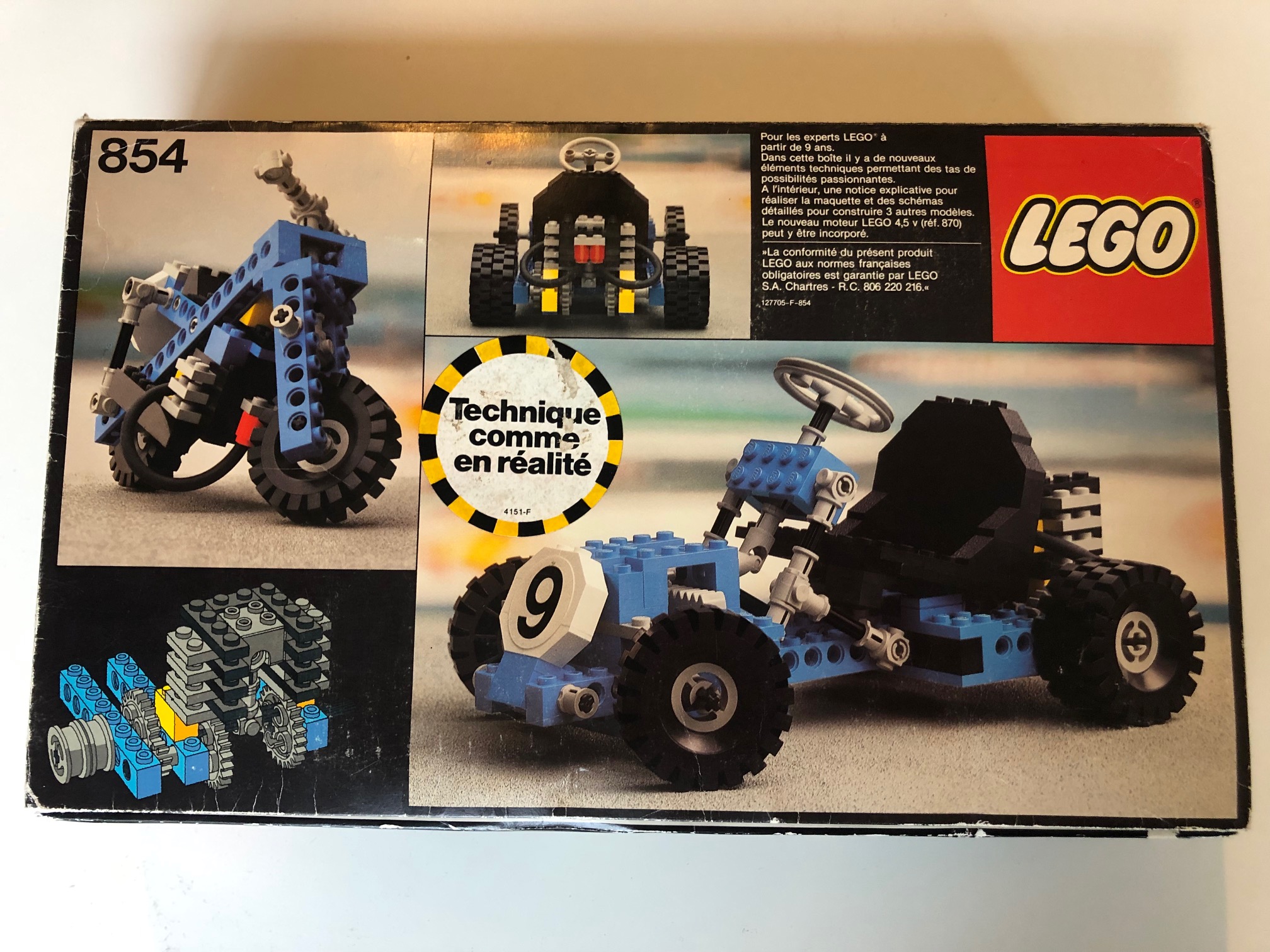 j'ai reçu ce set Technic 854 acheté à la même personne qui m'a vendu le lot précédent Town de début 80. il est nickel celui ci ! avec l'auto n°9 non posé, c'est rare...