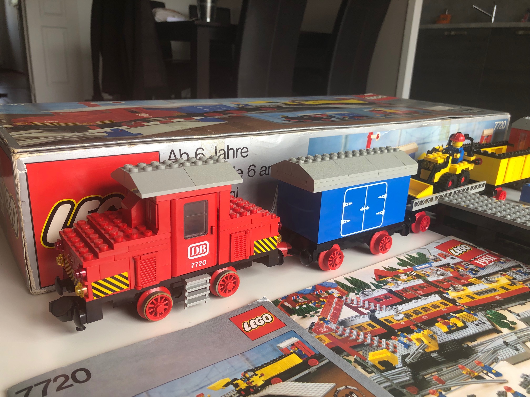 Je continue sur les set train.... avec ce 7720 négocié également à 70€ fdp inclus sur LBC ! il est complet avec boites, insert et le couvercle plastique! catalogue 81 et planche d'autoc entamée. Il y a également 4 caoutchouc de roue en rab (Les 4 sur les roues de la loco sont d'ailleurs nickel pour leur age...
